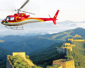 Take a helicopter to get a new bird's view of panoramic Great Wall in Beijing.