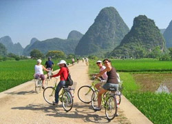 Overview: Biking tour is famous in Yangshuo. You will cycle alongside the paddy field and orchards that surround the mountains will give a fascinating insight into life in rural China.