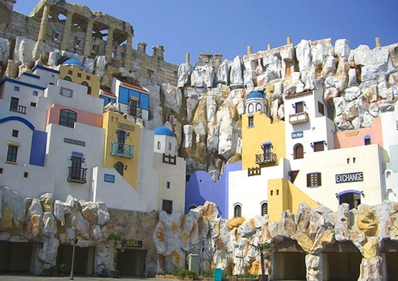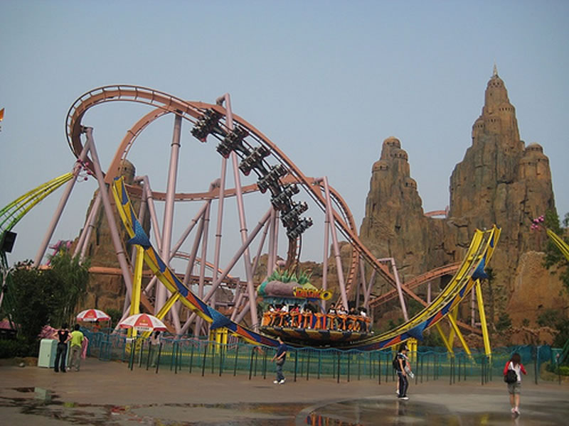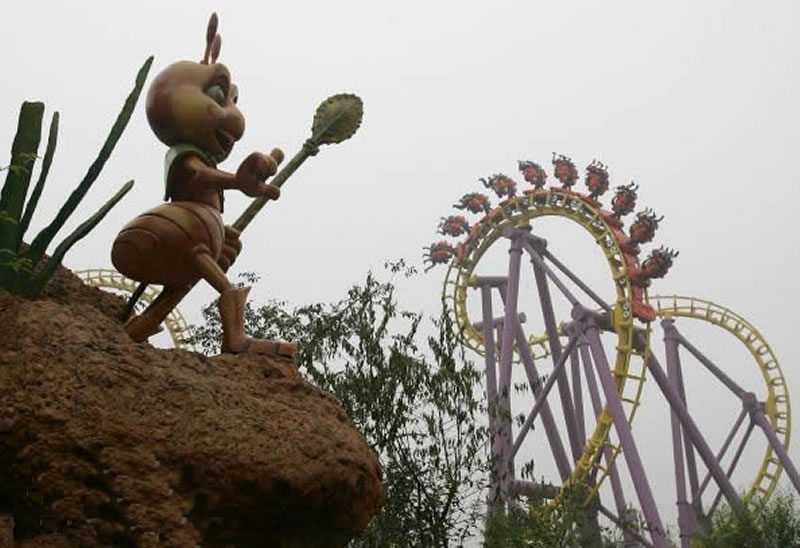 Beijing Happy Valley photos tour -- Beijing Happy Valley is the capital's answer to Disneyland. Divided into six themed regions (Wild Fjord, A Greek Village-Atlantis, Aegean Harbor, a Mayan temple, the Tibetan Shangri-La and an Ant Kingdom), Happy Valley's 120 attractions aren't just a series of daredevil rides, although there are these available for the eager thrill seeker. Beijing's newest amusement park also offers exhibits, sculptures, performances and an IMAX theatre.