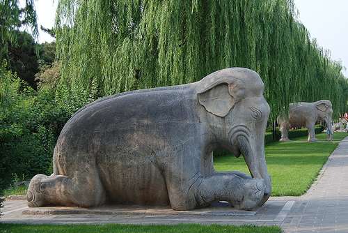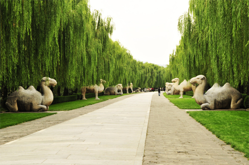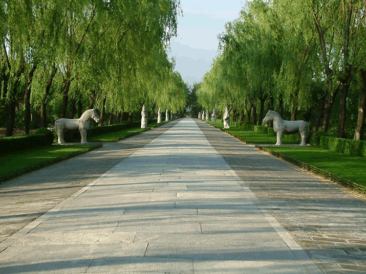 leading to the imperial tombs, the path, is lined on either side with willows and remarkable animals and human figures